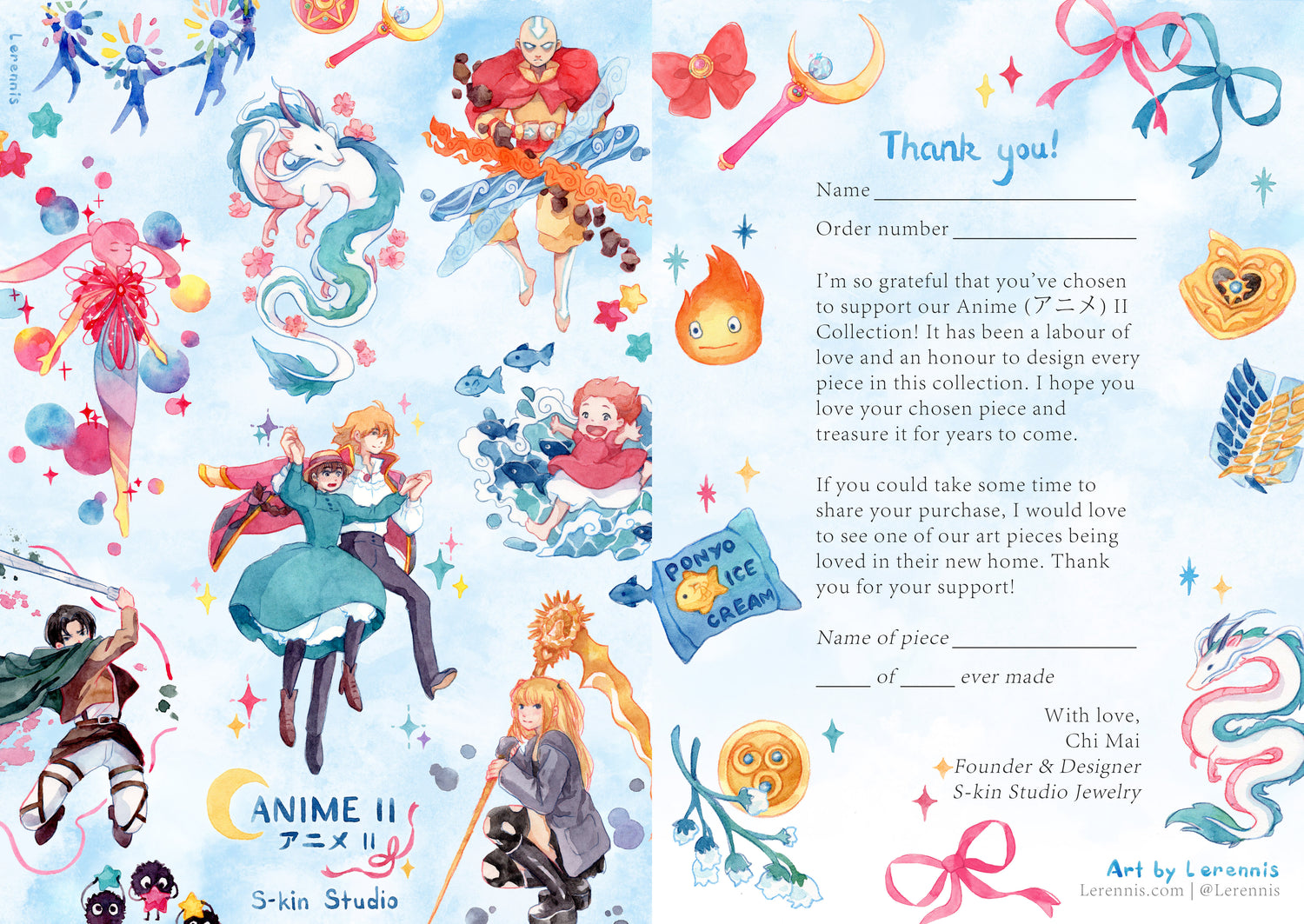 S-kin Studio Jewelry is a fine jewelry brand based in Melbourne. We created customised illustrations in watercolour for the branding of their Anime Collection, including thank you cards, tote bags, and elements for social media marketing.